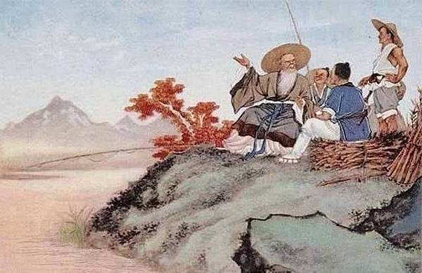 一直隱居海濱的姜子牙在渭水之濱的磻溪(今陝西寶雞境內)釣魚,以便與周文王相見。圖為明 戴進《渭濱垂釣圖》。(公有領域)