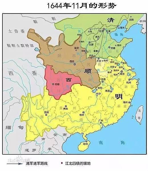 南逃的王公大臣們在東南地區擁立明朝宗室登基,是為南明。