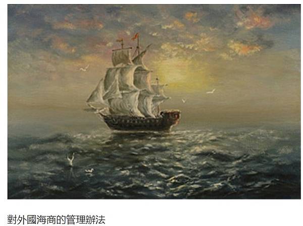 鄭氏集團對於外國海商的管理辦法大致分為兩個階段,第一階段是鄭芝龍領導時期、鄭成功領導時期、鄭經領導的前期。這一時段的管理辦法與對待國內海商的辦法基本相同,都是通過發放牌票和令旗來賦予海商們貿易權的。第二階段是鄭經領導後期至鄭克爽被施琅俘虜,這一時期的管理辦法類似於現代海商貿易的關稅管理制度。兩者的分界線是清朝海禁政策的實施。
