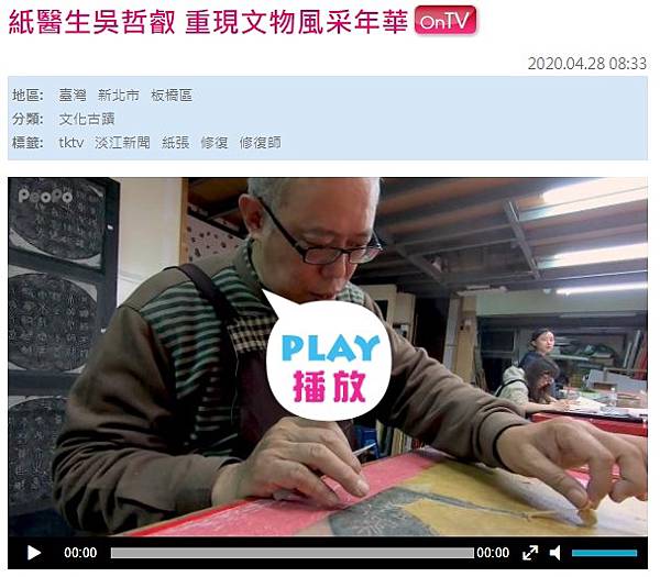 紙醫生吳哲叡 重現文物風采年華 – 淡江電視台 https://bit.ly/2I8OJh8