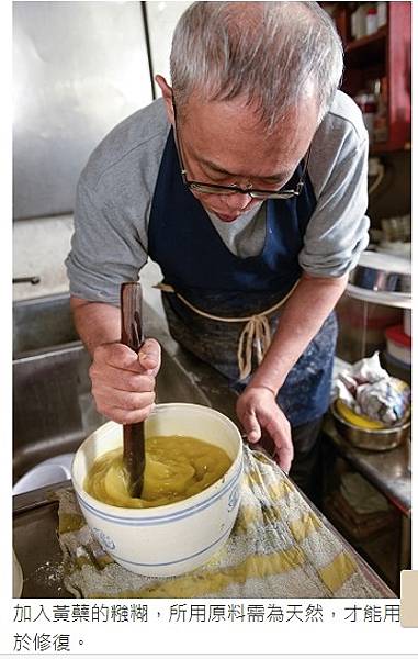 加入黃蘗的糨糊,所用原料需為天然,才能用於修復。