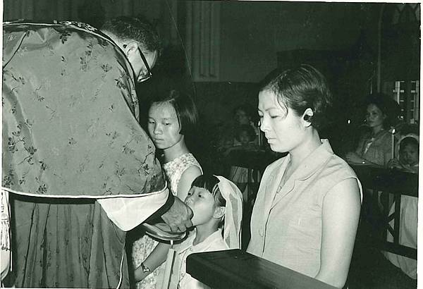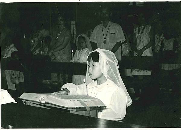 天主教的一個儀式-「領聖體」。時間約民國58年,典禮在竹東天主教堂舉行,小男孩穿正式的西服,小女孩穿夢幻的白紗禮服,那種神聖又可愛場面,深印在腦海。(3) 新竹竹東懷舊篇 | 天主教的一個儀式-「領聖體」 | Facebook https://bit.ly/3z7GpEe