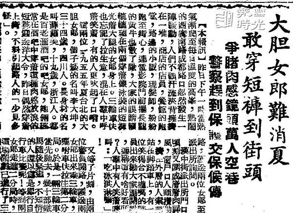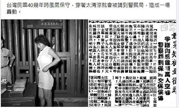 台灣民國40幾年時風氣保守,穿著太清涼就會被請到警察局,造成一場轟動。