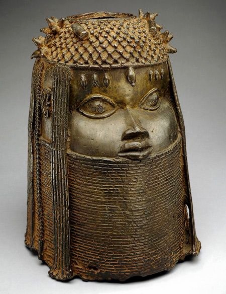 作為中世紀形成的一個黑人王國,在貝寧王國存在的800年中,一直是非洲大陸發達的文化中心之一。貝寧雕刻是典型的宮廷藝術,雕刻作品主要是姿態自然的圓雕和浮雕,雕像的題材以表現國王、王后為多,太子、達官、僧侶、貴族、武士、獵人、樂師、傳教士和隨員也都有出現,還有表現歷史人物,或為神造像的。國王雕像頭頂王冠,滿戴胸徽,有時還用鰻魚作腿──象徵他們是海神奧洛貢。武士雕像則是右手持矛、左手拿盾、全身披掛的立像。一般說來,青銅雕像是靜態的,講究勻稱協調,尺寸大小依被表現對象的身份地位而定。代表作有《國王頭像》和《母后頭像》等。