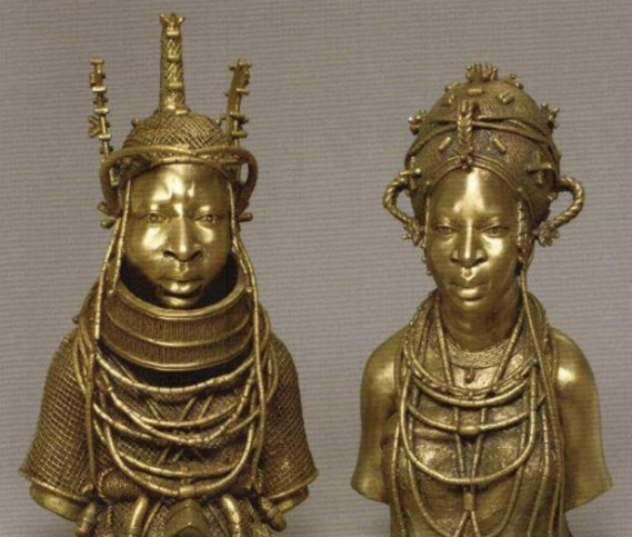 这些黄铜雕塑兴起于15世纪晚期,是当时到这里进行贸易的葡萄牙人带来的高质量商品。