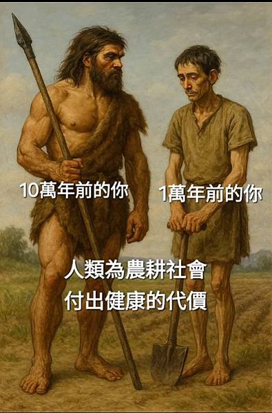從現代人的眼光看,農業帶來了穩定、進步、文明,但也讓我們失去了一些原始的健康與彈性。打獵的人雖然日子辛苦,但身體強壯、食物多樣、疾病少。而農夫的世界,是熱量夠了,但營養不夠、身體超載、健康下滑。https://www.facebook.com/share/v/1VuihMSGdW/
