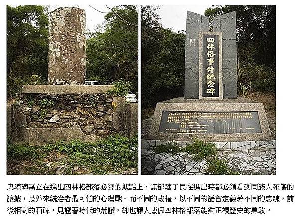 圖片說明:位於四林村的忠魂碑,見證著日據時期排灣族原住民抗日的「四林格事件」。