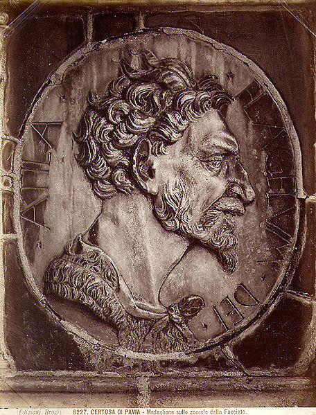 西元19世紀的阿提拉像。銘文在拉丁文的意思為「這是阿提拉,上帝降下的災害」。