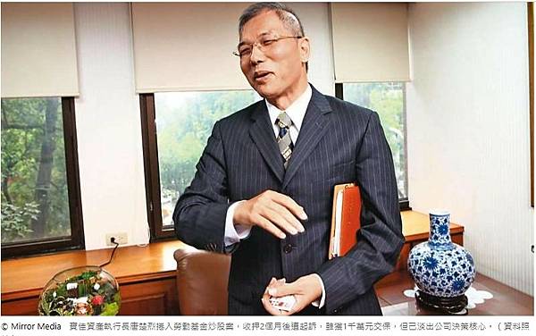 寶佳資產執行長唐楚烈捲入勞動基金炒股案,收押2個月後遭起訴,雖獲1千萬元交保,但已淡出公司決策核心。(資料照片)© Mirror Media 寶佳資產執行長唐楚烈捲入勞動基金炒股案,收押2個月後遭起訴,雖獲1千萬元交保,但已淡出公司決策核心。(資料照片)
