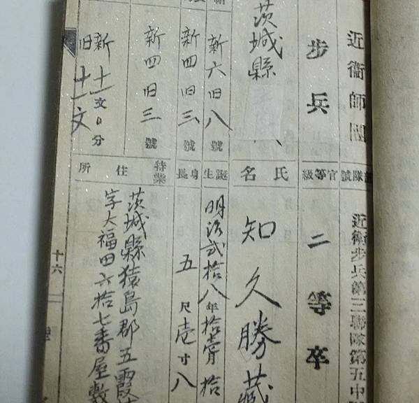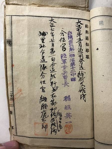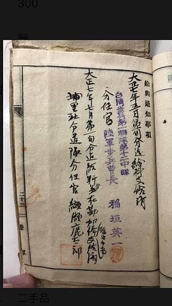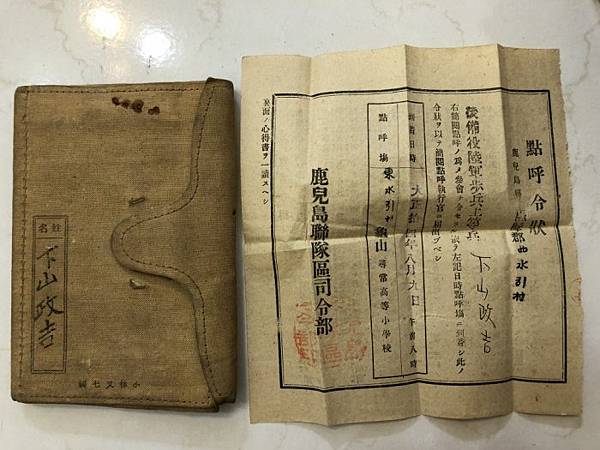 日本軍人古閒 龍造的軍隊手牒---台灣軍