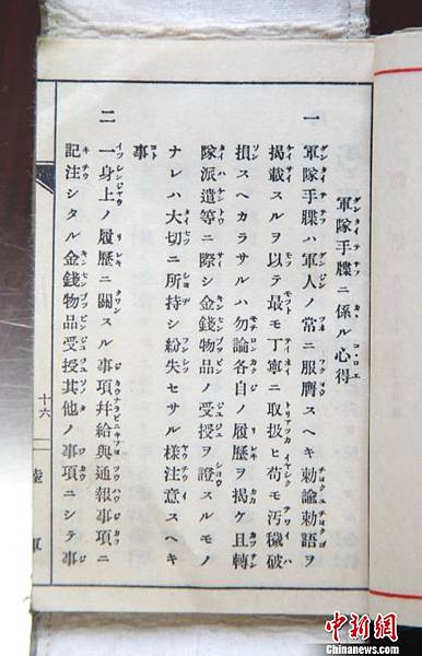 註:1942年後版本的軍人手牒在天皇敕諭後增加了大概三頁的東條英機的《戰陣訓》,主要內容是不要當俘虜,被俘是可恥的之類的「軍人榮辱觀」,整本軍隊手牒的頁數也從二十七頁增加到三十多頁。