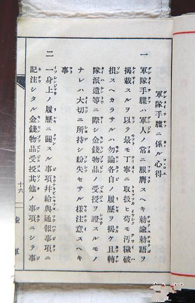 第十五頁是《軍人誓文》,就是正式成為軍人時宣誓用的,大意是要條條堅守天皇敕諭與讀法,絕不違背。