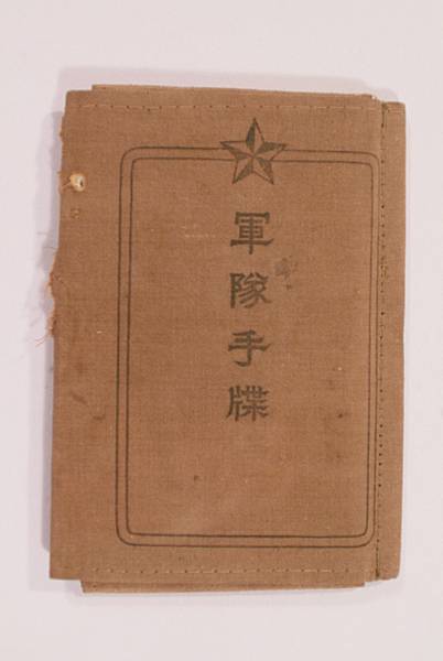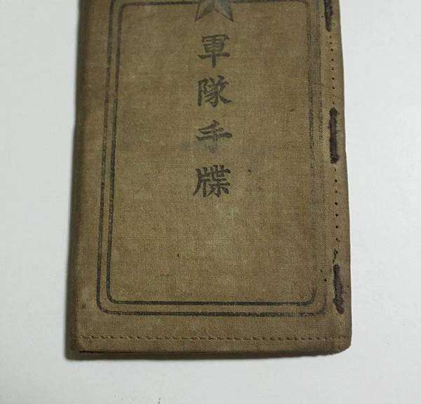 ▲軍隊手牒封皮,用防水亞麻布製作,右開本翻閱,封面的五角星代表陸軍。