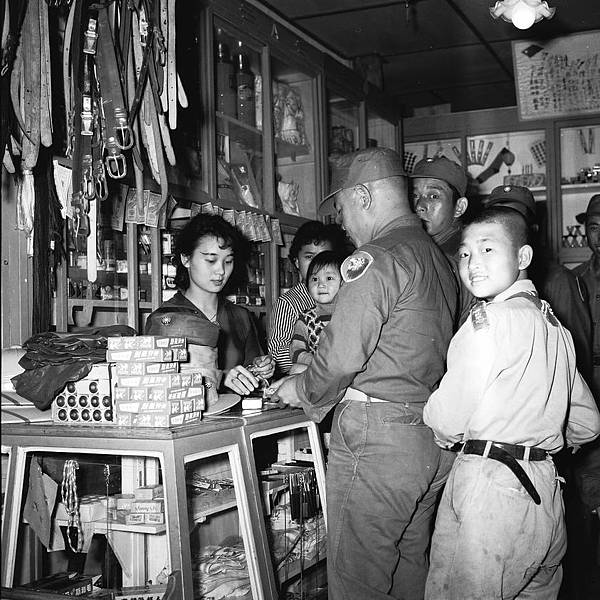 幾名軍人在一間雜貨店買東西。店裡貨色豐富、琳瑯滿目,舉凡飲料、酒類、牙膏、牙刷、毛巾、手帕、打火機、皮帶、洗臉盆……一應俱全,需要補充生活用品的軍人均會光顧此地,尤其店家漂亮女兒更會成為將士們背後津津樂道。