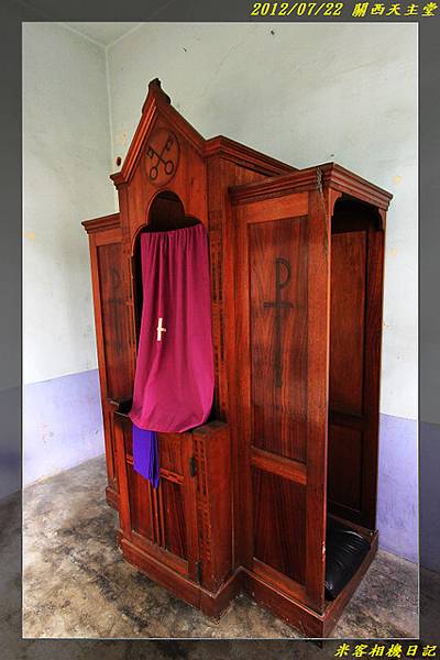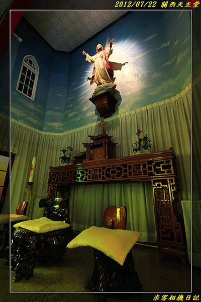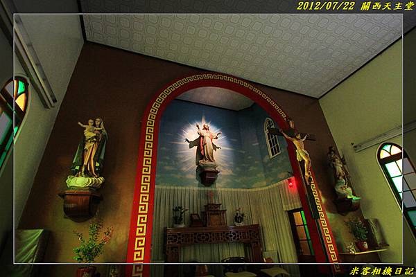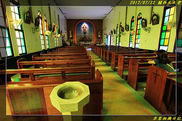 關西天主堂是關西鎮的知名地標,哥德式建築的教堂會吸引路人的眼光,我抵達教堂時剛好教堂內的活動結束,所以正好可以進入教堂內部拍攝,許多教友看見我拿相機,也投以正常的眼神,表示這裡有許多遊客慕名而來吧。