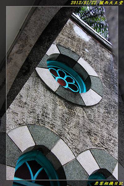 關西天主堂的建築外牆以青、白相間的洗石子作為裝飾