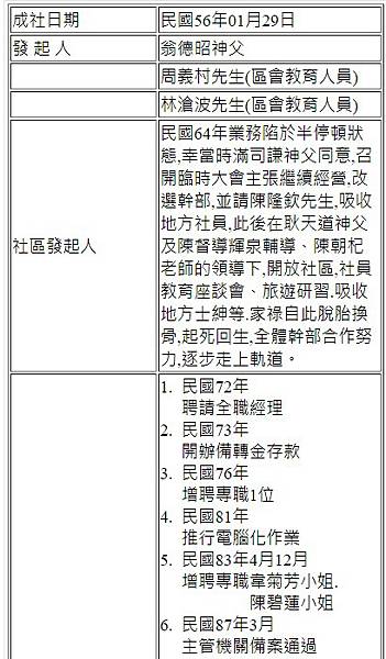 三、教友組織:耶穌聖心儲蓄互助社、教友傳教協進會、聖體生活團、聖詠團、善終會、青年會、主日學、幕道班
