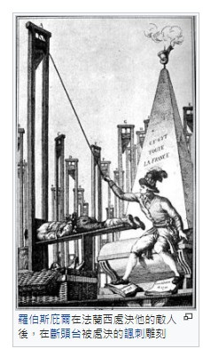 羅伯斯庇爾在法蘭西處決他的敵人後,在斷頭台被處決的諷刺雕刻