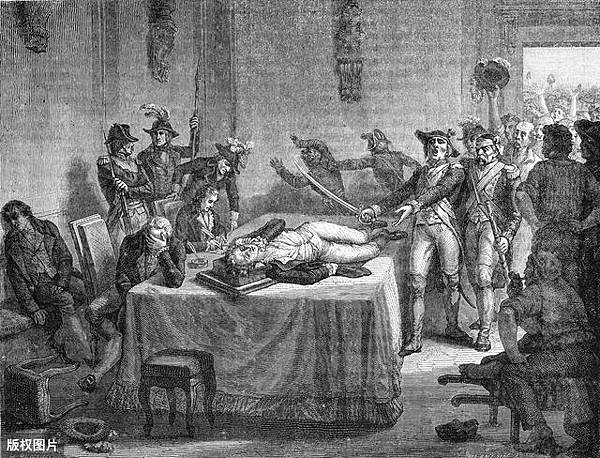 羅伯斯庇爾被逮捕,他可能嘗試自殺,但子彈只是粉碎了他的下巴。也可能是在攻佔市政大廳時,被查爾斯-安德烈·梅達 槍傷的。當時清況混亂,難以釐清。第二天,他就被送上斷頭台。[34] 公共安全委員會以往無任期限制的常任委員的統治結束了。 羅伯斯庇爾被處決後的第二天,新成員被任命並加上任期限制,每三個月改選四分之一的委員; 往後,它的權力也一點一點的降低。 這不是一個完全或立即保守的時期; 也並未設想恢復共和國政府; 在九月讓-保爾·馬拉被重新安葬在 先賢祠。 [35]雅各賓專政 - 維基百科,自由的百科全書 https://bit.ly/3lRzhDy
