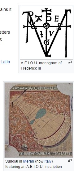 A.E.I.O.U.,或AEIOU,是哈布斯堡王朝皇帝使用的格言,亦是奧地利帝國的國家格言。這個格言是由腓特烈三世發明的,這位皇帝喜歡使用縮寫的、帶有神秘色彩的語言。[1]在1666年發現的一本筆記上,他用德文和拉丁文解釋了A.E.I.O.U.的含義:「世界屬於奧地利」(德文:Alles Erdreich ist Österreich untertan;拉丁文:Austriae est imperare orbi universo)。[2]在同一本筆記中的另一段則有使用A.E.I.O.U.作為第一行每個詞首字母的對句,而這一行意為「我被選帝侯所喜愛」(拉丁文:amor electis, iniustis ordinor ultor)。[2]