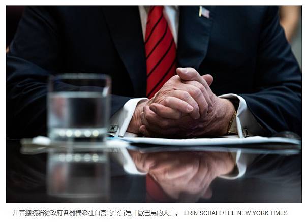 川普總統稱從政府各機構派往白宮的官員為「歐巴馬的人」。 ERIN SCHAFF/THE NEW YORK TIMES