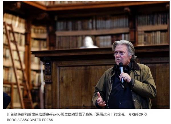 川普總統的前首席策略師史蒂芬·K·班農幫助鞏固了廢除「深層政府」的想法。 GREGORIO BORGIA/ASSOCIATED PRESS