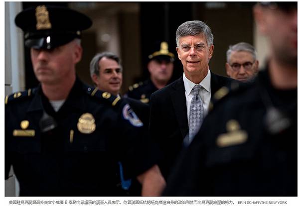 美國駐烏克蘭最高外交官小威廉·B·泰勒向眾議院的調查人員表示,他曾試圖抵抗總統為推進自身的政治利益而向烏克蘭施壓的努力。