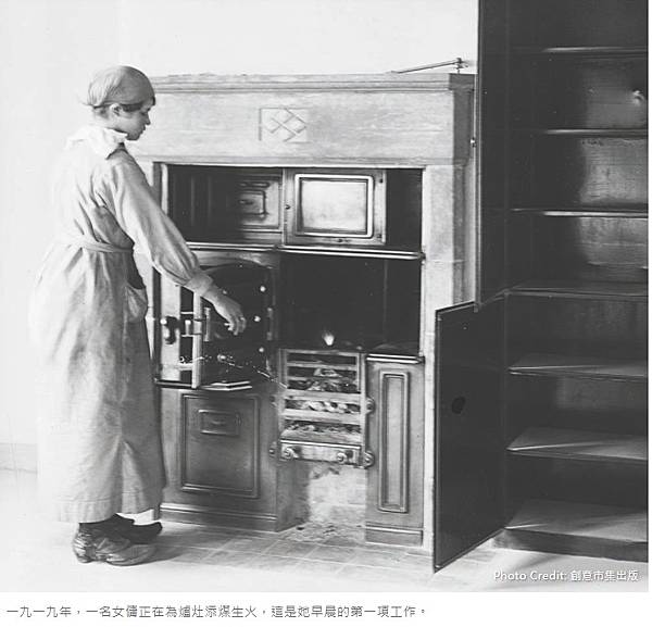 p_15_一九一九年,一名女傭正在為爐灶添煤生火,這是她早晨的第一項工作。