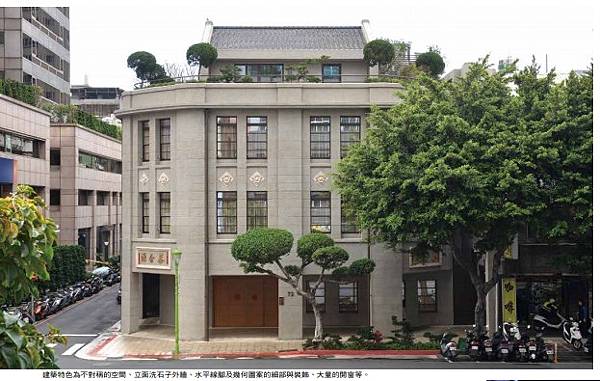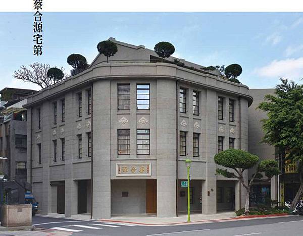 「蔡合源宅」外觀採簡約風格,有長窗、欄杆,臨後巷有天井設計;內部則以四根貫穿樓板之挺直圓柱,作為主要支撐結構。民國99年向台北市政府申請獲得認證「歷史建築」(未達古蹟標準),並加以修繕,於103年5月完工,頂樓也多了植栽。