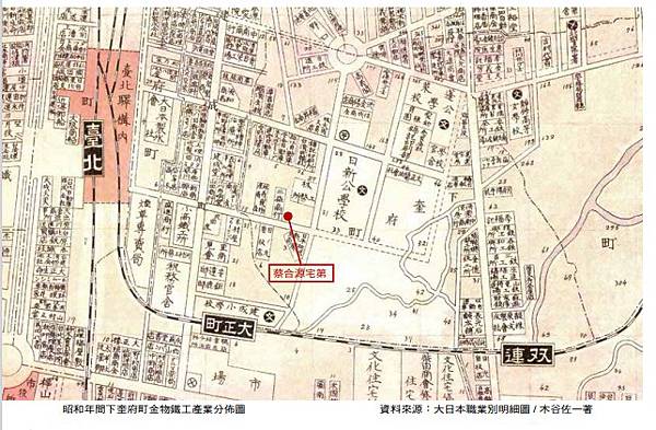 在這靜靜的承德路上靠近太原路115巷口附近,難以想像這裡曾有人聲鼎沸的「中央戲院」坐落於此,現今只留下對面創辦人蔡阿仕的「蔡合源」宅第記錄著這段 歷史,日治時期,蔡阿仕的家族在三重一帶經營「合源製紙工廠」,是當時北台灣大型的造紙廠之一。
