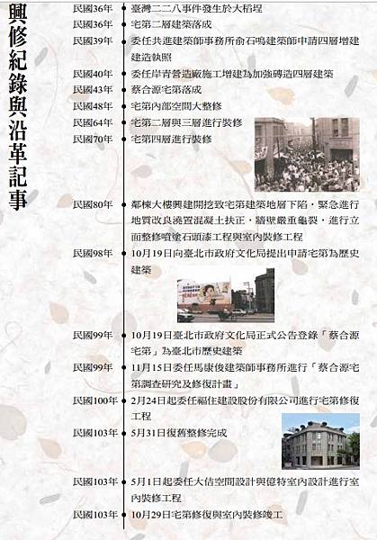 對於大同區的昔日繁華,蔡董事長如數家珍般,一邊翻閱著一幀幀古老照片,一邊娓娓而述,記憶彷彿回到了遙遠的從前。譬如每年農曆5月13,城隍爺出巡,大同區家家戶戶都辦流水席,人潮真是摩肩接踵,當時他家的「蔡合源」宅第,更是人聲沸揚、熱鬧滾滾,這也是當時整個大稻埕的繁華寫照。 矗立春秋七十載,古老大宅蔡合源