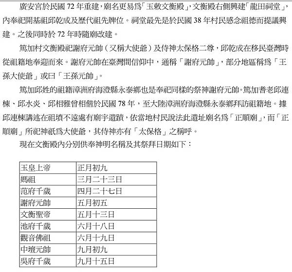 當年吳新榮先生在篤加看到的廣安宮已於民國七十二年重建時,易名為文衡殿。
