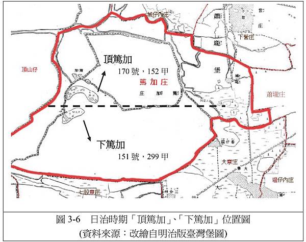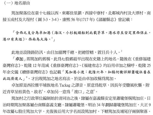 辦詳解。』」32 到了清同治年間的《嘉義縣輿圖冊》,則有「篤加莊」之聚落名。