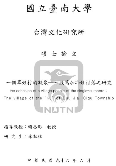 一個單姓村的凝聚─七股篤加邱姓村落之研究__臺灣博碩士論文知識加值系統 https://bit.ly/2Whnnsz