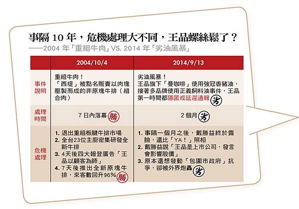 2014年10月,頂新牛油被查出使用非食用油,王品集團多家分店使用到問題牛油,王品後續的退費問題引發議論。