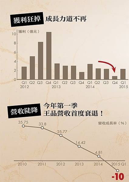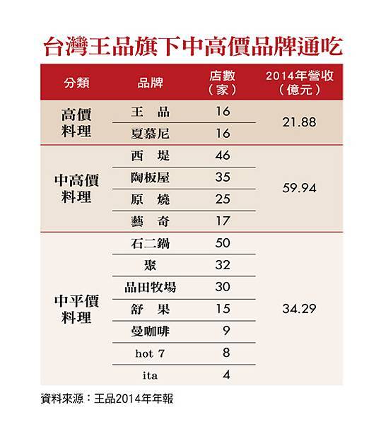 2013年至2014上半年,獲利首度沒跟著開新店的業績成長而提升。「理論上多品牌不應該產生競蝕效應,」王品前獨立董事,台大國企系教授李吉仁分析,這代表王品沒有做好品牌區隔,彼此的差異化不大。