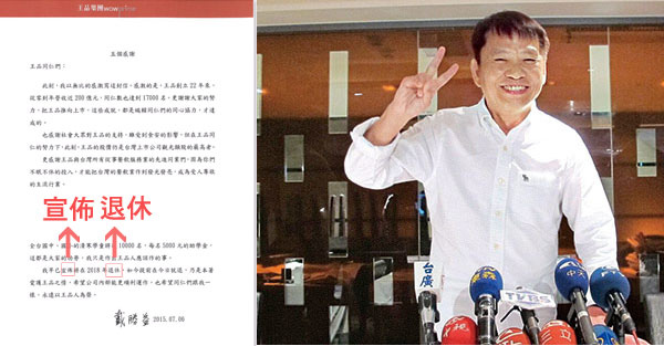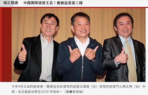 台灣王品原本最高的兩個權力核心,由陳正輝對外宣布:「戴勝益退居二線,王國雄退休。」應該就是負起了台灣王品出狀況的管理責任。