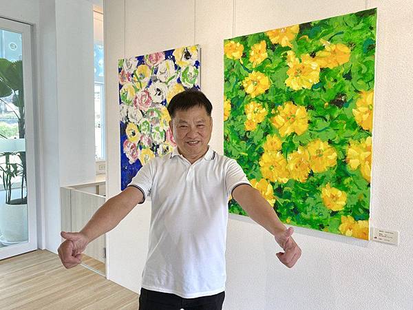 目前,益品美術館以展示戴勝益長期學畫的作品為主。戴勝益說,他很喜花朵的繽紛絢爛與色彩豐富,所以這次展出的主題是「拈花惹草」,都是以花卉為主,畫作尺寸從50F起跳,從高山杜鵑、桔梗、太陽花,甚至連絲瓜花、花椰菜都成為他作畫的主角。