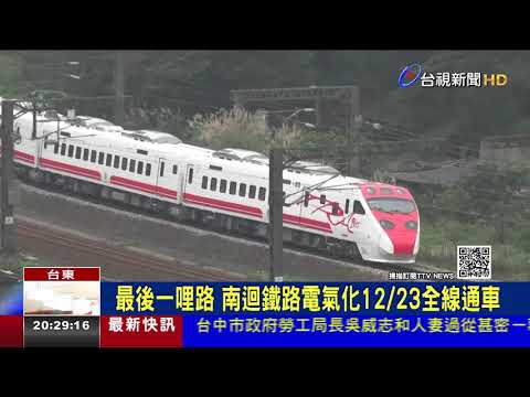 環島鐵路電氣化最後一哩路,南迴鐵路電氣化今(20)日通車,此後搭乘台鐵和高鐵環島只要9小時,全程搭乘台鐵環島11.5小時,進入全台一日鐵道生活圈新願景。總統蔡英文今日將親赴台東車站主持通車典禮,預期會搶先體驗、搭乘火車離開。