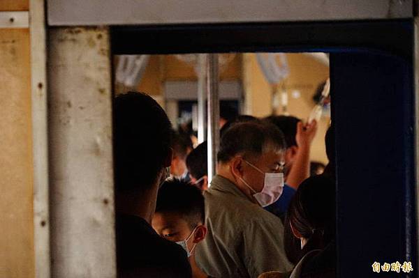 藍皮普快暫時停駛前的最後週末,人潮塞爆車廂。(記者陳彥廷攝)