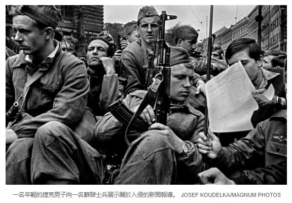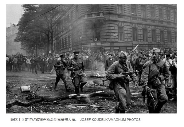 蘇聯士兵前往佔領捷克斯洛伐克廣播大樓。 JOSEF KOUDELKA/MAGNUM PHOTOS
