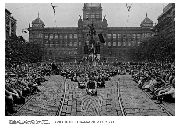 溫塞斯拉斯廣場的大罷工。 JOSEF KOUDELKA/MAGNUM PHOTOS