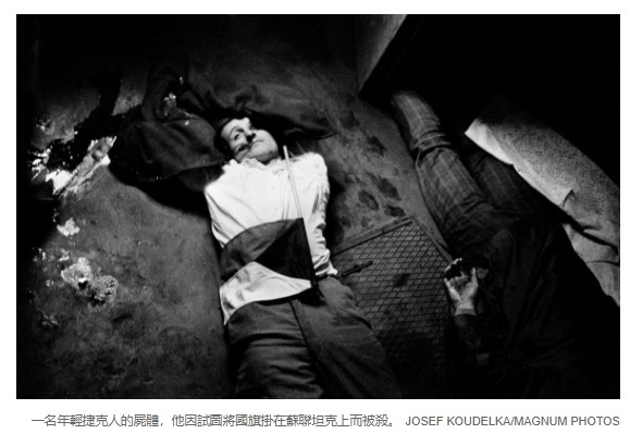 一名年輕捷克人的屍體,他因試圖將國旗掛在蘇聯坦克上而被殺。 JOSEF KOUDELKA/MAGNUM PHOTOS