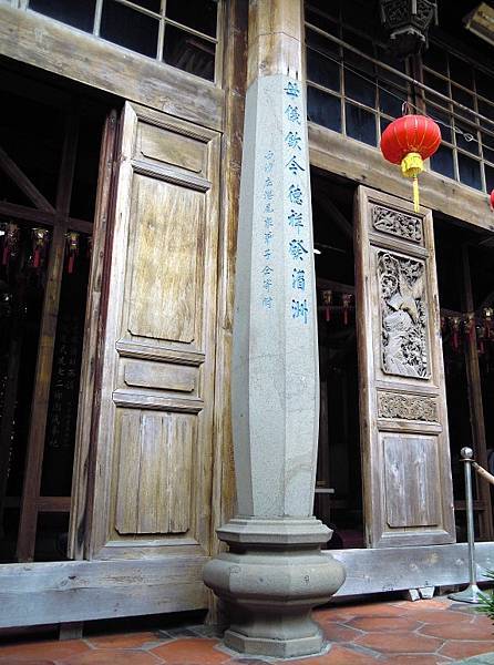 澎湖天后宮正殿之八角梭柱-大正12年(1923)3月改建+澎湖天后宮正殿八角梭柱梭柱,即兩端細,中間粗,如織機梭子之柱式.
