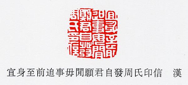 漢印前後經歷西漢、新莽、東漢、魏、晉、南北朝前後約八百年的歷史,印章的發展變化雖大體相同,但各朝亦有所變異,因而對這個時代印章的認識,也有不同的標準。進行分類的認識也各有別,現舉例說明如下: