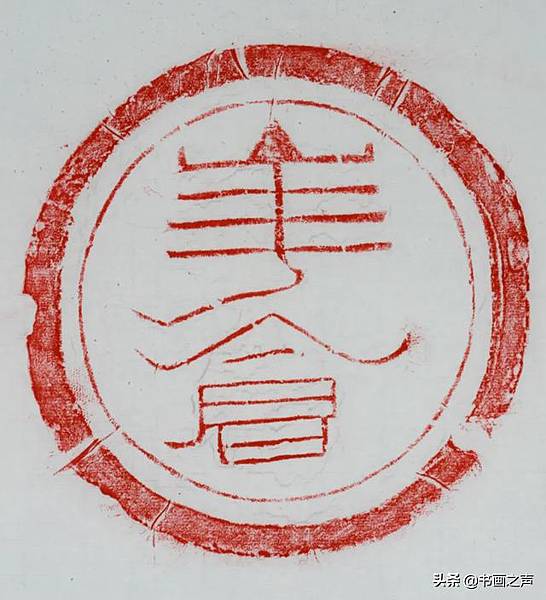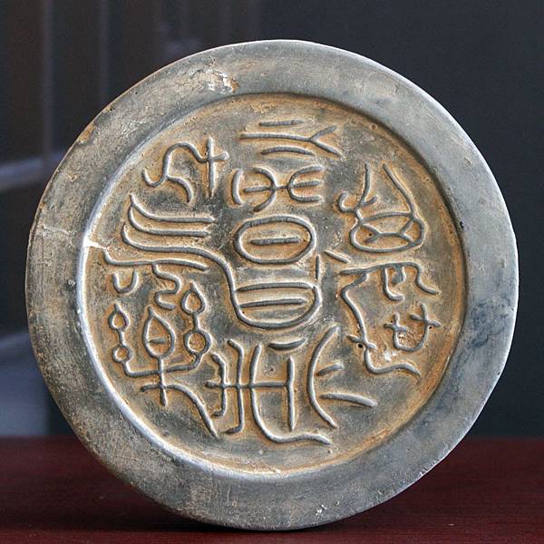 西漢官署用瓦。直徑十六厘米。無格界,字上下排列,篆隸雜糅,筆畫勁健俊逸。「華」字上部為山字結構,為華山專用字,豎筆下部分彎曲,意在為「倉」字讓出空間,「倉」字上部「人」部撇畫拉長,使得當面構圖更為豐滿,又有濃郁的隸書意味。「華倉」即京師倉別稱,因在華山下而得名,是長安附近最重要的糧倉。《漢書·王莽傳》:「京師倉在華陰灌北渭口也。」此瓦出土於陝西華陰。
