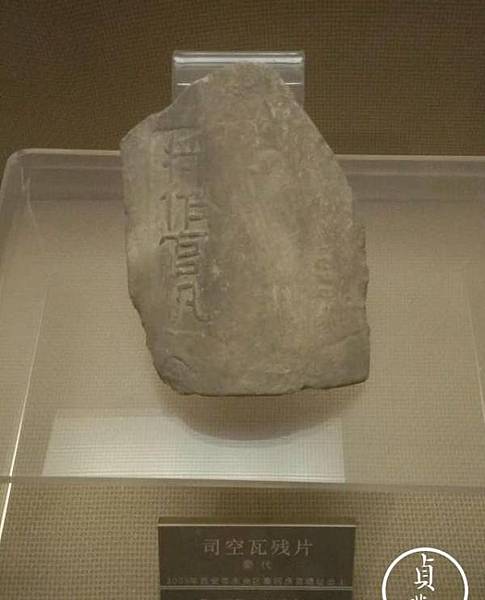 秦代"將作官瓦"殘片,因為有戳印的銘文而顯得珍貴,是秦代陶文的重要實物資料。 然而博物館工作人員卻把與之風馬牛不相及的「司空瓦殘片」說明牌置於」將作官瓦殘片」的正前方。
