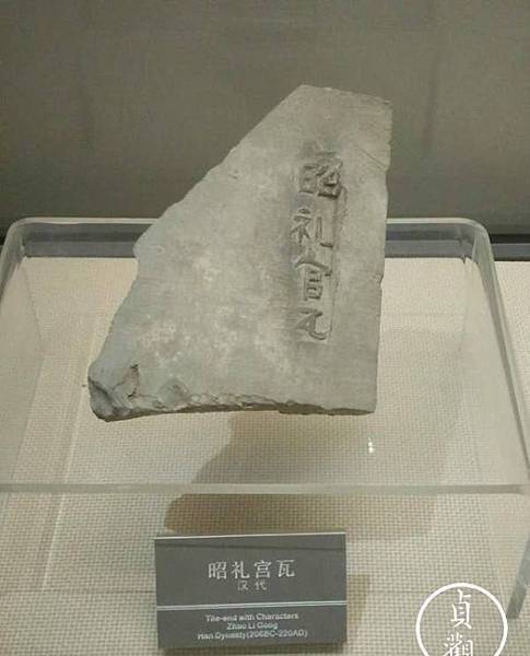 "昭禮官瓦"殘片,博物館的說明牌上出現了兩處錯誤:一是把"官"字錯譯為了"宮"字;一是把"唐代"誤定為了"漢代"。