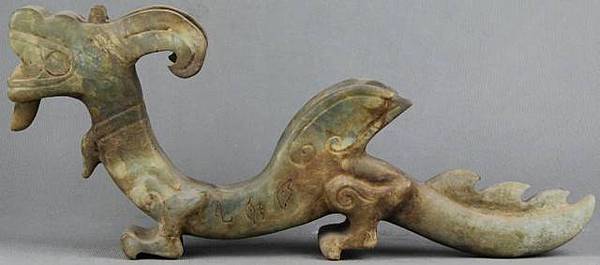 《周禮》記載的「六器」中,還有圭、琥和璜,圭的形狀前端成尖銳狀,下端平直。古代說「半圭為璋」,可能就是將兩件邊璋拼在一起的形狀。琥,就是一種形似老虎的玉器,是六器中出現最晚的,大約出現於戰國晚期。璜,是一種半圓形的玉器,《周禮》記載「半璧為璜」。