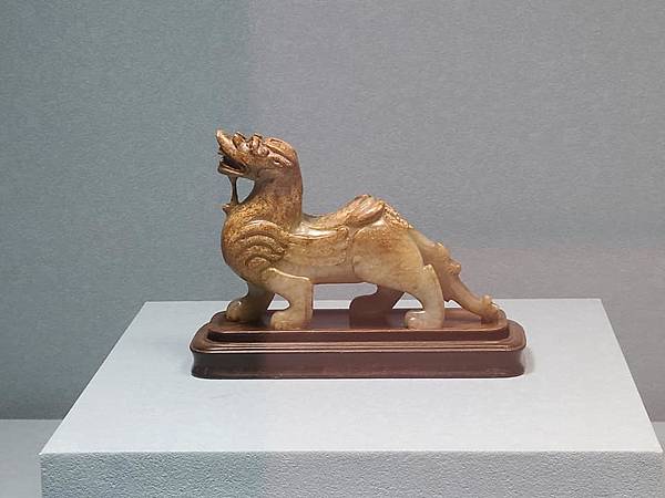 另一件故宮超級巨星,東漢的「玉辟邪」也有類似的意涵。漢代因為崇尚神仙思想,帶有翅膀的祥瑞動物也被視為仙界生物,「玉辟邪」就代表了不可限量的神性與能力。而玉辟邪,整體接近直角三角形的構圖,營造出辟邪向前跳躍的動態感,加上圓形雕刻型態,都反映了當時玉雕技術與藝術性,確實達到某種高峰。
